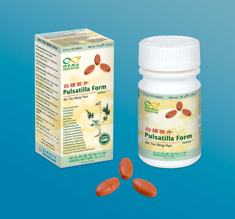 Pulsatilla chinensis root, Phellodendron chinensis bark, Fraxinus rhynchophylla cortex, Coptis chinensis rhizome, Bulking Agent (Potato starch&Magnesium stearate), coating (microcrystalline cellulose and glycerol).