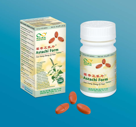 Angelica dahurica root, Poria cocos, Areca catechu pericarp, Atractylodes lancea rhizome, Citrus reticulata pericarp, Magnolia officinalis bark, Pinellia ternate rhizome, Glycyrrhiza uralensis root extract, Pogostemon cablin oil, Perilla frutescens leaf oil, Bulking Agent (Potato starch&Magnesium stearate), coating (microcrystalline cellulose and glycerol).