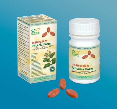 Uncaria rhynchophylla stem, Polygonum multiflorum stem, Taxillus chinensis stem and leaf, Achyranthes bidentata, Eucommia ulmoides bark, Leonurus japonicus, Scutellaria baicalensis root, Poria cocos, Gardenia jasminoides fruit, Concha Haliotidis, Bulking Agent (Potato starch&Magnesium stearate), coating (microcrystalline cellulose and glycerol).